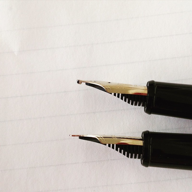 おそらく、元々の個体差・使用するインクの性質・使いこなし具合 等々の要素で、うんと細くなったり二段階くらい太いペン先の線とたいして変わらなくなったりの、面白い変化が出てきそうな予感がします。