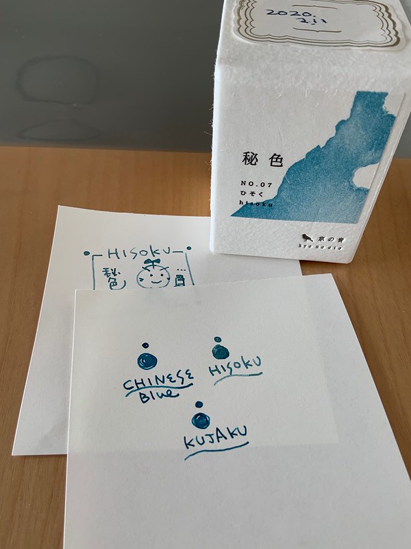 近いような気がするインクを書き較べてみたのですが、色彩雫の孔雀とチャイニーズブルー、すごく似ているんですね…