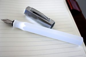 書き味なのですが、このペン先樹脂の先端ほんの僅か、数ミリだけがフニャッと筆先のようにしなる柔らかさを持っていて、そこから後ろは結構硬め。