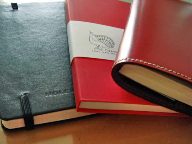 というわけで、この赤革と、熱帯植物のような生き生きした深いグリーン革とで相当迷ったのでした。(…いずれ買い足すかもしれません。引越専用ノートも分冊しているので~..。)