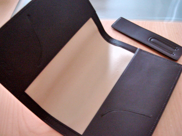 片方には「しおり」をなくさないように差し込み、もう片方には、名刺サイズの無地の情報カードを何枚か入れてあります。
