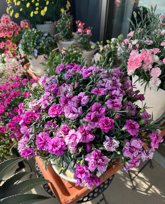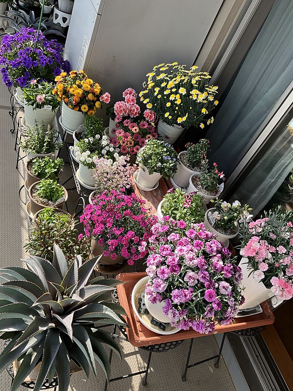 いちばん良い季節なのに建物修繕工事で何も出来なかった昨年と違い、今年の春はベランダ園芸をしっかりたっぷりやってます。