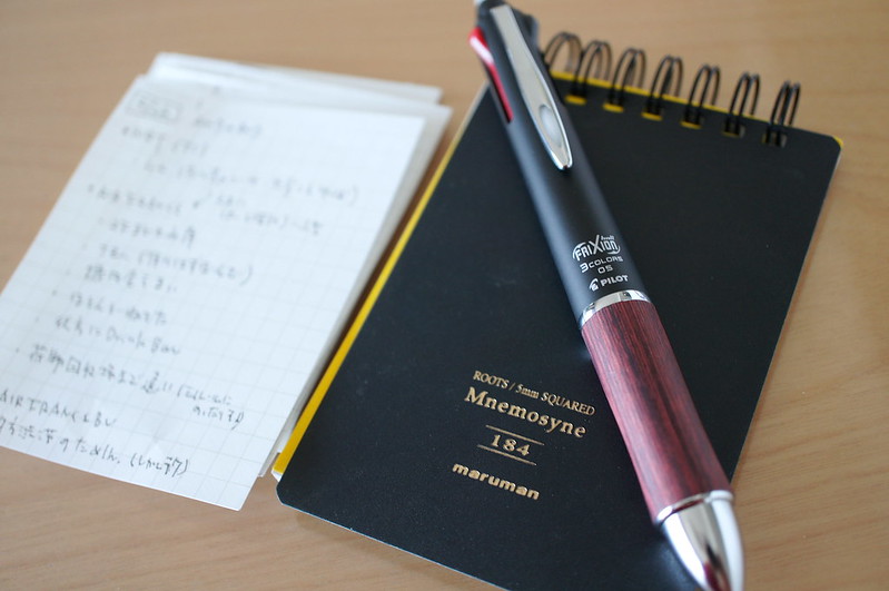ニーモシネの184というA7サイズのミシン目入り縦型リングメモ帳+フリクションボール3