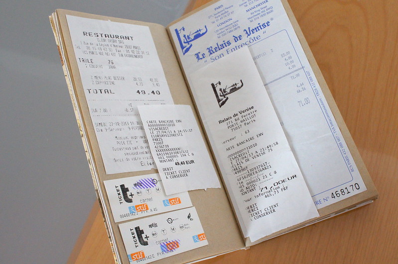 1日に1ページ(袋)づつレシートやチケットを詰めていくだけで、帰国後のこういう記録作りがとてもラクです。