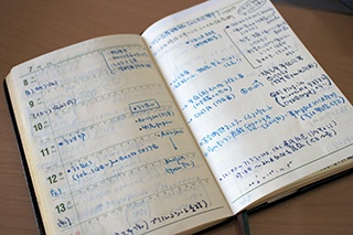 巻頭の「月間予定表」を横にたおして(横書きして)その日の代表的用事を極細字で書くのも同じです。