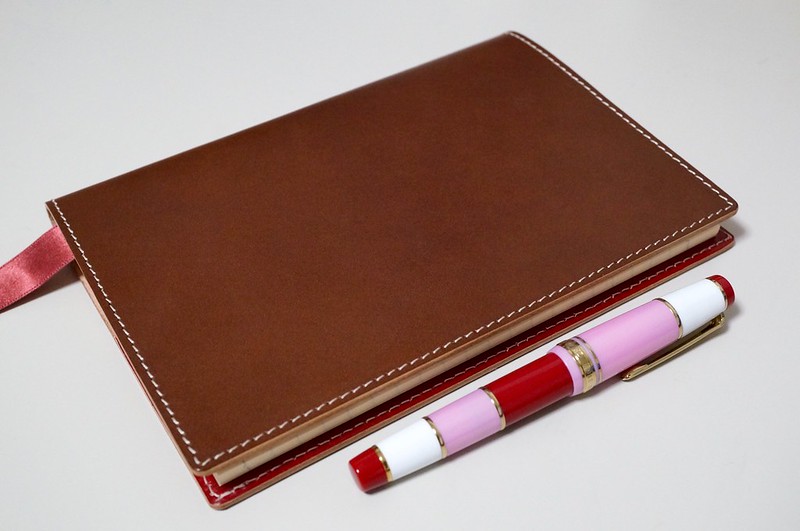 これに追加料金でこまかいカスタマイズを加えて、内側ポケットやペンホルダーや栞紐等々の手帳カバー的なパーツをいろいろと足すことができるわけです。