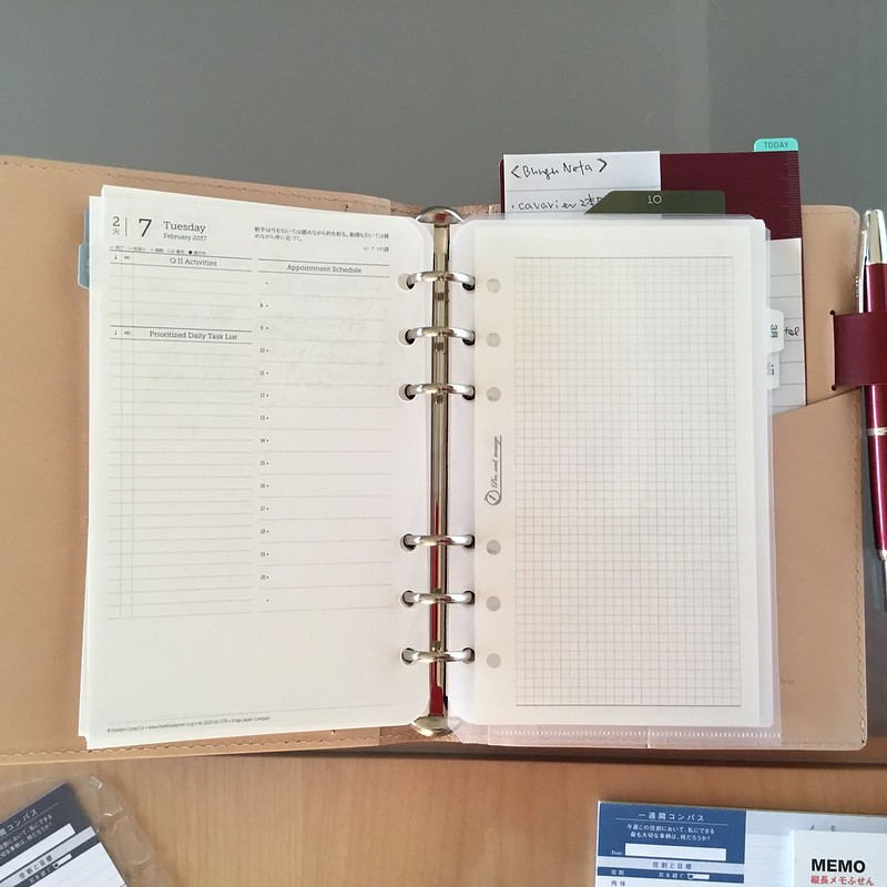 クリアフォルダ内には今のところ、普通の方眼リフィルにToDoリストを書き並べていますが、入れるリフィル紙も自分なりに(もっと週間を俯瞰できるものになるよう)これからいろいろと試してみようと思います。