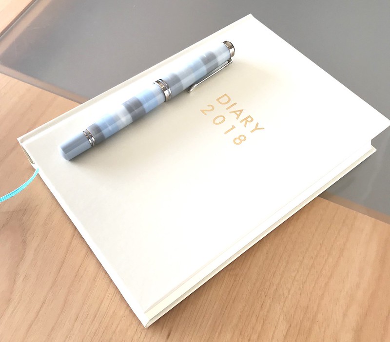 しかし、筺を外してみると象牙色地にDIARY2018と金文字が押されたシンプルな本体が現れ、その上品さに心惹かれます。