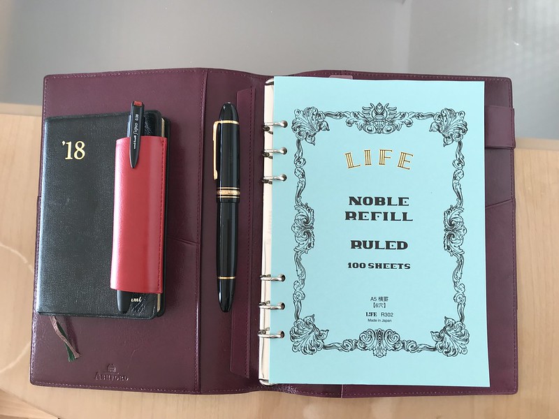 私はいまA5のバインダーでは、確定申告用の経費管理と体調日記それぞれの記録用に2種類の月間ブロックリフィル + LIFEのノーブルリフィルや、(中途半端にページが余ったA5ノートを解体して6穴を開けたりもする)メモ罫のリフィルを使ってまして。
