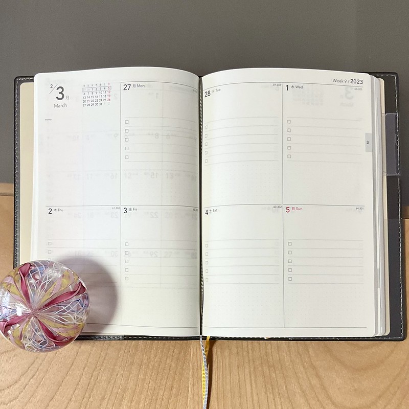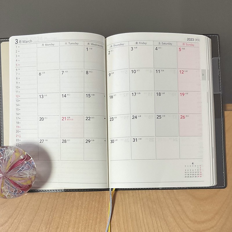 買っておいた4月始まりの手帳、いよいよ来週から使用開始が可能!:水曜日に3月になるから:と知りました。