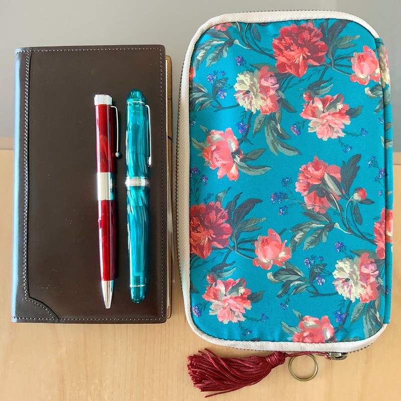 この絵柄、まあちょっと派手ではあるんですが、今年のほぼ日手帳のジッパーズカバーのラインナップにある、LIBERTY社製生地のものです。