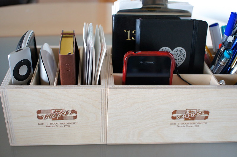 ほんとうは4箱全てをご披露したいところなんですけれど、ごっちゃりと(でも本人には判別できる秩序で)棒状文具を差している状態で躊躇いたしましたので、