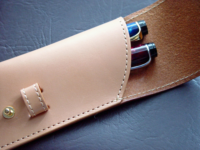 (革に柔軟性がほとんどない)現時点でもオプティマが2本余裕で入るし、高さもまだまだ余るので、もっと大型な万年筆の2本ざしくらいは平気でしょう。