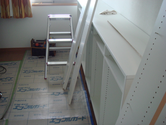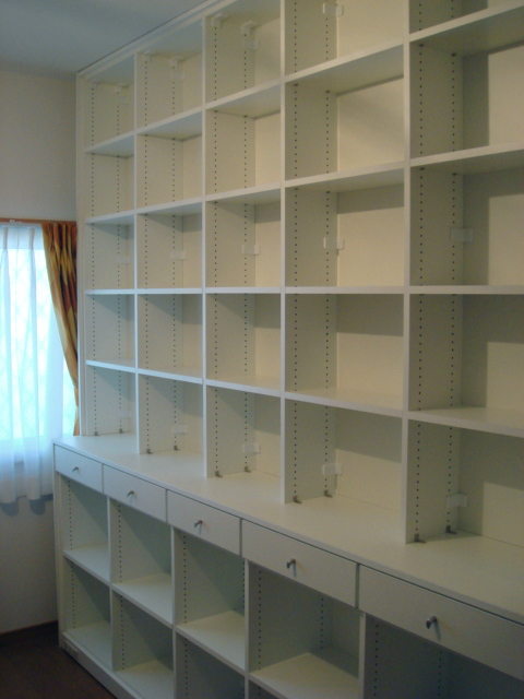 (新居にはまだ引っ越してはいませんが)本日は、本棚の施工日でした。
