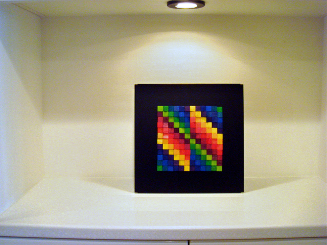 それぞれの四角いチップはマグネットで黒い背景板にくっつけられますので、いろんなドット模様を描くことができます。