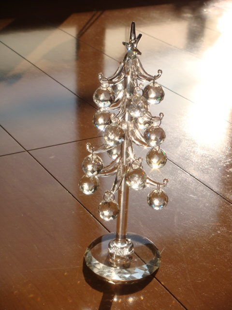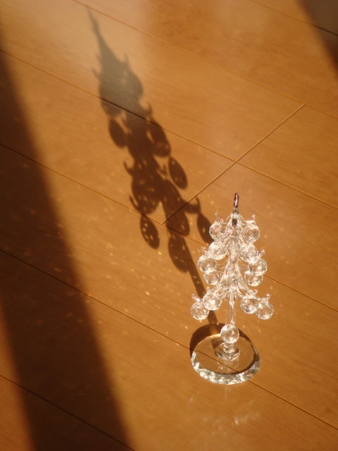 箱を開けると、多面体カットされたガラス球が厚いスポンジにたくさんはまっていて、枝に1個づつ下げていくんですが、キラキラな輝きと、ガラスならではの重みが素敵。