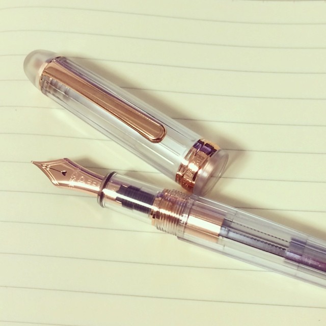 すりガラスっぽいフロスト加工透明軸や、ピンクゴールドづかいが物珍しくて、やはり注文してしまいました。